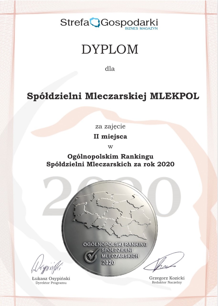 Mlekpol po raz kolejny znalazł się w czołówce Ogólnopolskiego Rankingu Najlepszych Spółdzielni Mleczarskich. Mlekpol zajął drugie miejsce.