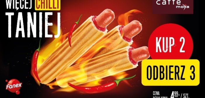 Fanex – polski producent sosów i dodatków gastronomicznych dla branży HoReCa, wspiera najnowszą promocję w konceptach Caffe MOYA na stacjach paliw MOYA. W ramach akcji „Więcej chilli taniej”, klienci kupując dwa hot-dogi z nową parówką chilli, trzeciego dostają w prezencie, przy zakupie trzech hot-dogów – dostaną pięć, a przy zakupie pięciu – aż siedem. Za podkreślenie ognistego smaku przekąsek, odpowiadają pikantne sosy Fanex – Sriracha oraz Serowy Chili.