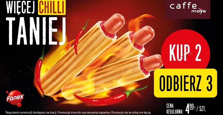 Aktualna promocja na stacjach MOYA, skierowana jest głównie do zwolenników nieco ostrzejszych smaków. Klienci zamawiając hot-dogi z nową parówką chilli, mogą podkreślić ich smak jednym z dwóch pikantnych sosów Fanex.