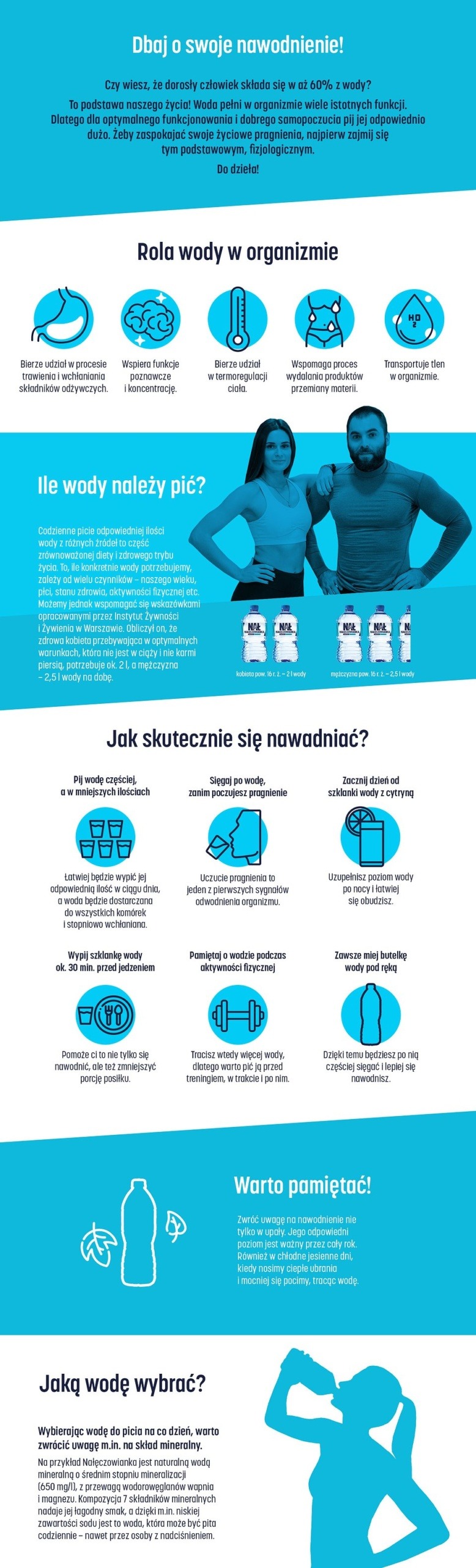 Odeszło lato, a razem z nim gorące dni i płynące zewsząd napomnienia, by podczas upałów odpowiednio się nawadniać. W rezultacie wiele osób, które jeszcze miesiąc temu nie rozstawały się z butelką wody, dziś może zapominać o jej regularnym piciu. To błąd, bo organizm potrzebuje odpowiedniej ilości wody przez cały rok. Ile powinniśmy jej pić i jak wybrać tę najlepszą dla siebie? Na te i inne pytania odpowiada Agata Ziemnicka, dietetyczka współpracująca z Nałęczowianką.