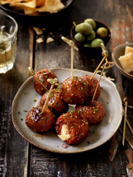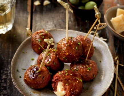 - Do ugotowanego sosu dodaj wcześniej upieczone klopsiki, obtocz je w powstałej glazurze, aby klopsik był pokryty nią z każdej strony. Gotowe danie udekoruj szczypiorkiem.