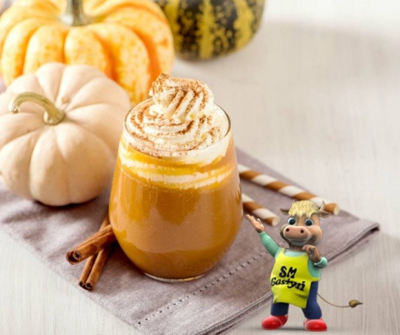 Na dno szklanki wlej 2 łyżki syropu z dyni lub 4 łyżki puree. Dodaj espresso. Następnie dodaj mleko do spieniania od SM Gostyń. Wierzch udekoruj bitą śmietaną, a całość posyp cynamonem lub kardamonem. Smacznego!