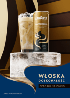 Marka Lavazza wkracza w segment gotowych do spożycia kaw mrożonych i wraz z partnerem, firmą PepsiCo, wprowadza na rynek dwie nowości: Cappuccino oraz Double Espresso. Jako ikona włoskiego stylu, Lavazza od ponad 120 lat oferuje niepowtarzalny smak kawy w każdej możliwej formie. Dostępne już w sklepach nowe kawy do spożycia na zimno, łączące niepowtarzalny i aksamitny smak uznanej włoskiej kawy i najwyższej jakości polskie mleko, produkowane i dystrybuowane są we współpracy z firmą PepsiCo. Partnerska współpraca pozwoli na zaproponowanie konsumentom zupełnie nowych produktów spożywczych, a tym samym konsekwentne poszerzanie oferty PepsiCo w odpowiedzi na zmieniające się gusta i oczekiwania konsumentów.