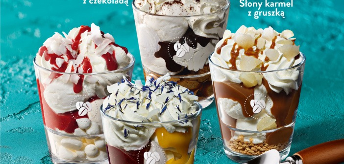 Zupełną nowością w menu jest Deser Lodowy o smaku słonego karmelu i gruszki – świeża gruszka od lat jest składnikiem używanym w najlepszych kuchniach świata, a połączona z intrygującym sosem o smaku słonego karmelu zaskakuje fuzją smaków. Co więcej, całość została tutaj pokryta bitą śmietaną, płatkami migdałów oraz ciasteczkami amaretti crumb. Subtelna słodycz owoców, kremowe lody oraz lekko słony karmel to połączenie, po które będziemy stale powracać.
