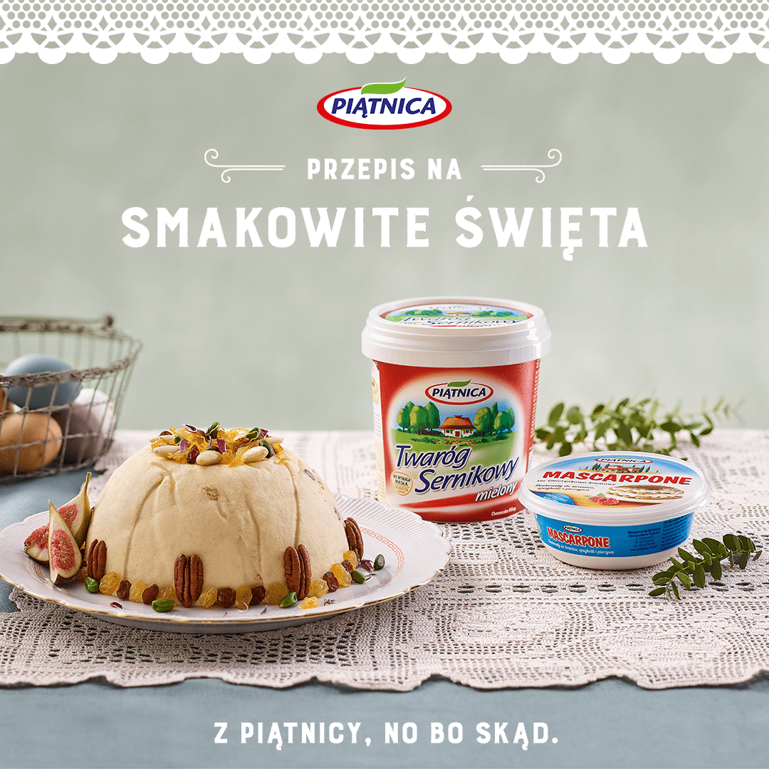 Tradycyjna wielkanocna babka, mazurek, sernik czy pascha to najpopularniejsze wielkanocne ciasta, które warto upiec, wykorzystując najlepsze produkty. Twaróg sernikowy OSM Piątnica, Mascarpone oraz piątnickie śmietany to składniki, bez których trudno wyobrazić sobie przygotowania do świąt Wielkiej Nocy. Dlatego marka Piątnica w komunikacji świątecznej stawia głównie na te produkty. Ich naturalny skład oraz wyjątkowy smak gwarantują doskonałe wypieki i kulinarny sukces.