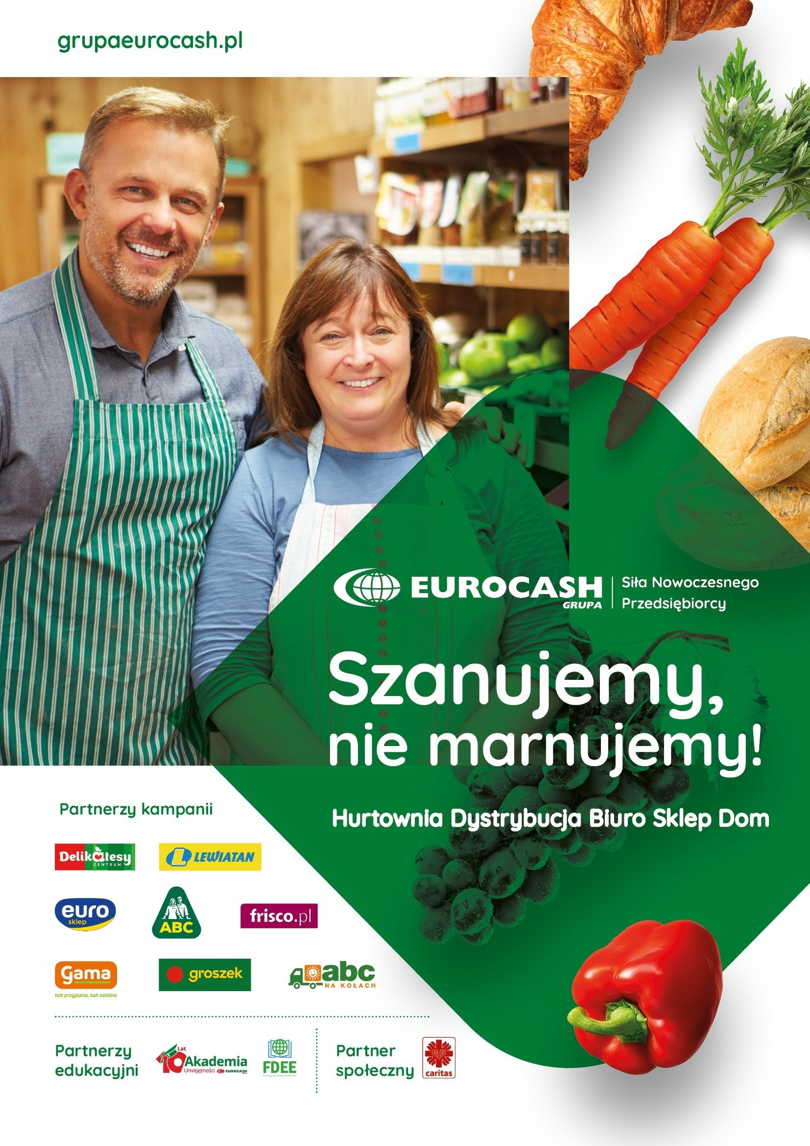 Trwa kampania „Szanujemy, nie marnujemy!”, która ma pomóc właścicielom sklepów detalicznych ograniczyć marnowanie żywności. To inicjatywa o szczególnym znaczeniu w branży – skierowana jest bowiem głównie do przedsiębiorców prowadzących sklepy spożywcze. W kampanię zaangażowały się wszystkie sieci związane z Grupą Eurocash: ABC, Groszek, Lewiatan, Euro Sklep, Gama i Delikatesy Centrum. Wspierają ją też koncept abc na kołach oraz sieć supermarketów Frisco, a partnerem społecznym jest Caritas Polska.
